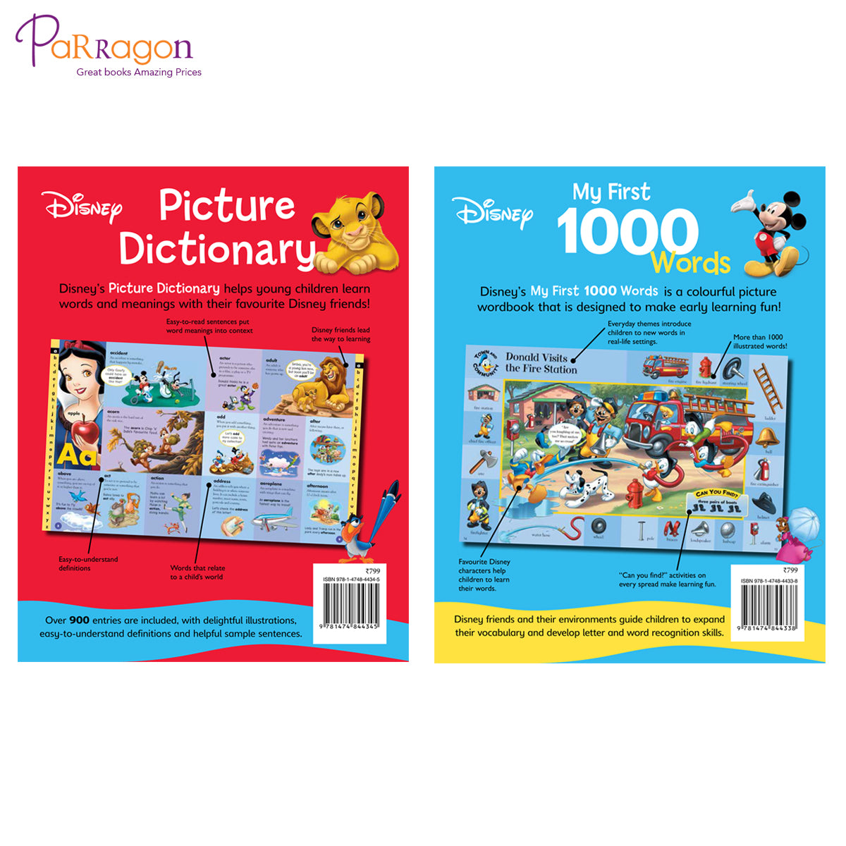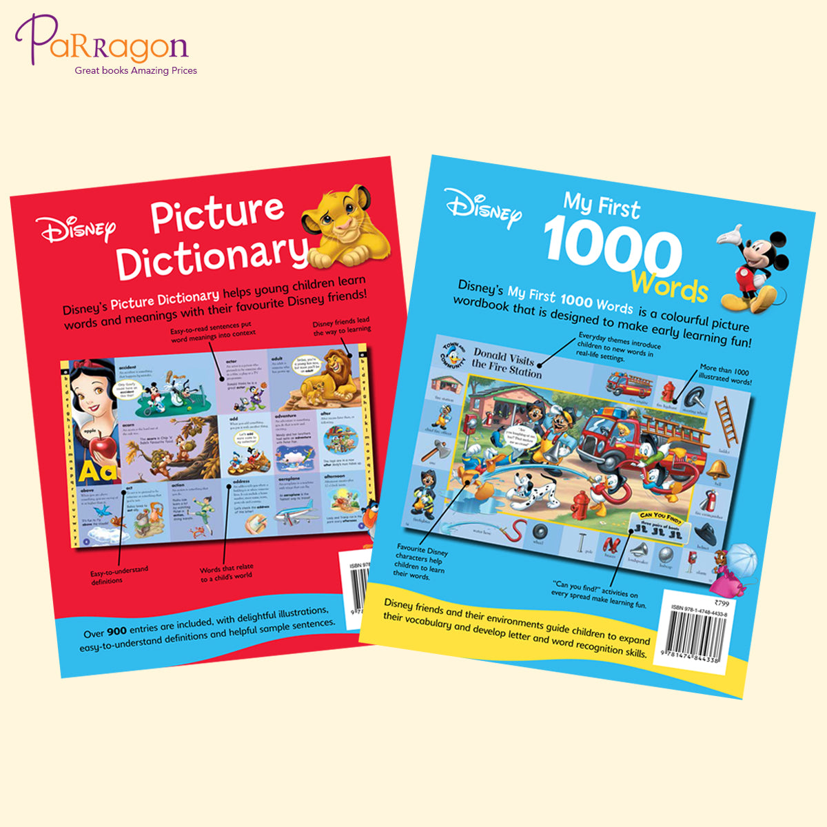 Introduce your little ones to the magical world of learning with the Disney Early Learners' Bundle. Each book is beautifully illustrated and features age-appropriate content that will capture your child's imagination and make learning a joyous experience. Pack of 2 Disney Picture Dictionery and Disney My First 1000 Words.