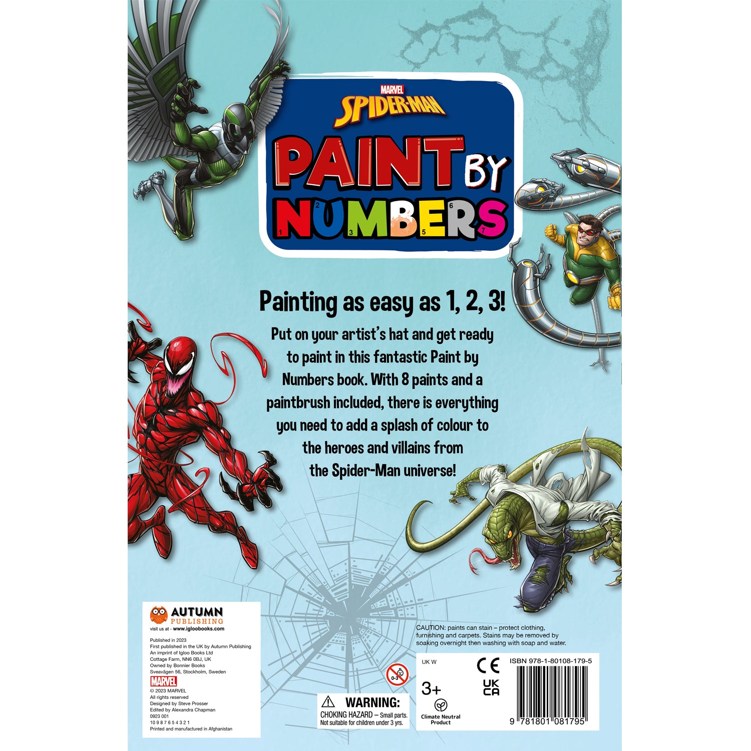 Put on your artist’s hat and get ready to paint in this fantastic Paint by Numbers book. With 8 paints and a paintbrush included, there’s everything you need to add a splash of colour into the world of Spiderman. Using you paint palette and paintbrush, follow the numbers on every page to bring the Spider-Man and friends to life.
