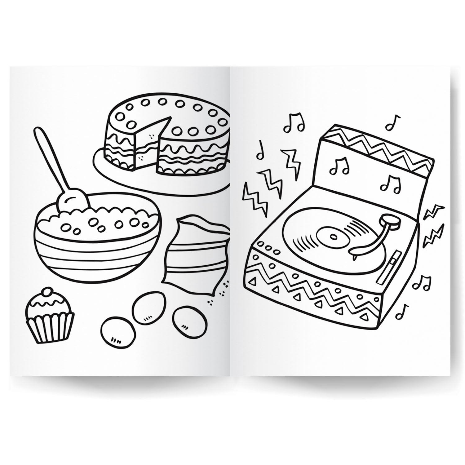 • Big shapes and bold lines for effortless colouring.