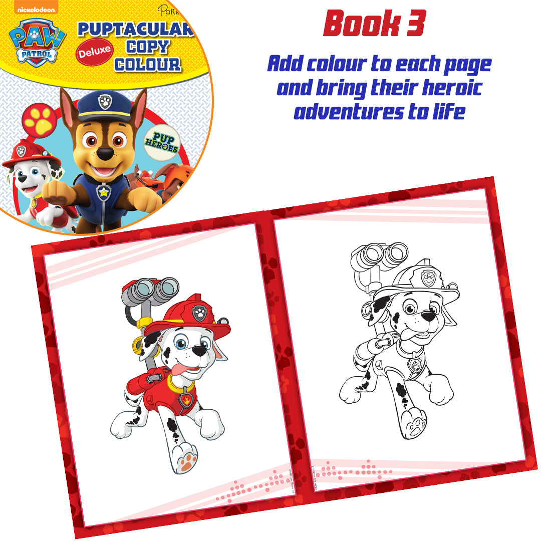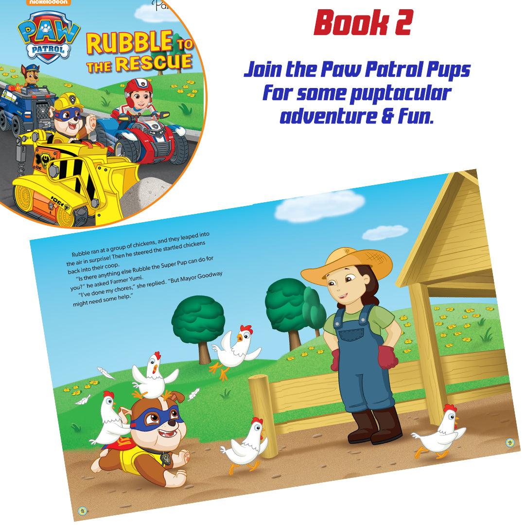STORY & COLOURING SET-JOIN The HEROIC PUPS OF PAW PATROL ON EXCITING ADVENTURES IN THIS SET OF BOOKS! In the two storybooks, children will follow their favorite characters as they go on daring missions to save the day. When it's time for a break from the action, kids can unwind with the included coloring book.
